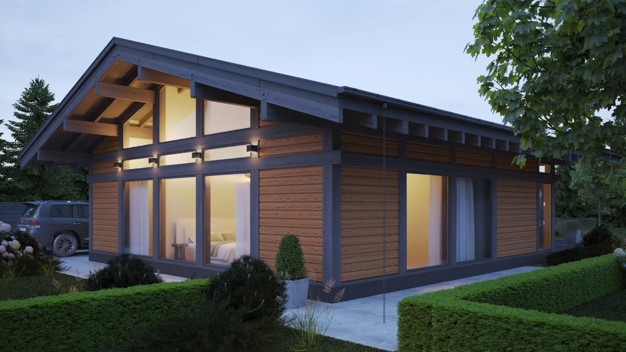 У дома присутствует огромный плюс - это обилие окон. У проекта большая площадь остекления, что характерно данному типу домов. В доме есть большие окна в пол во всех комнатах, также большое окно в санузле.