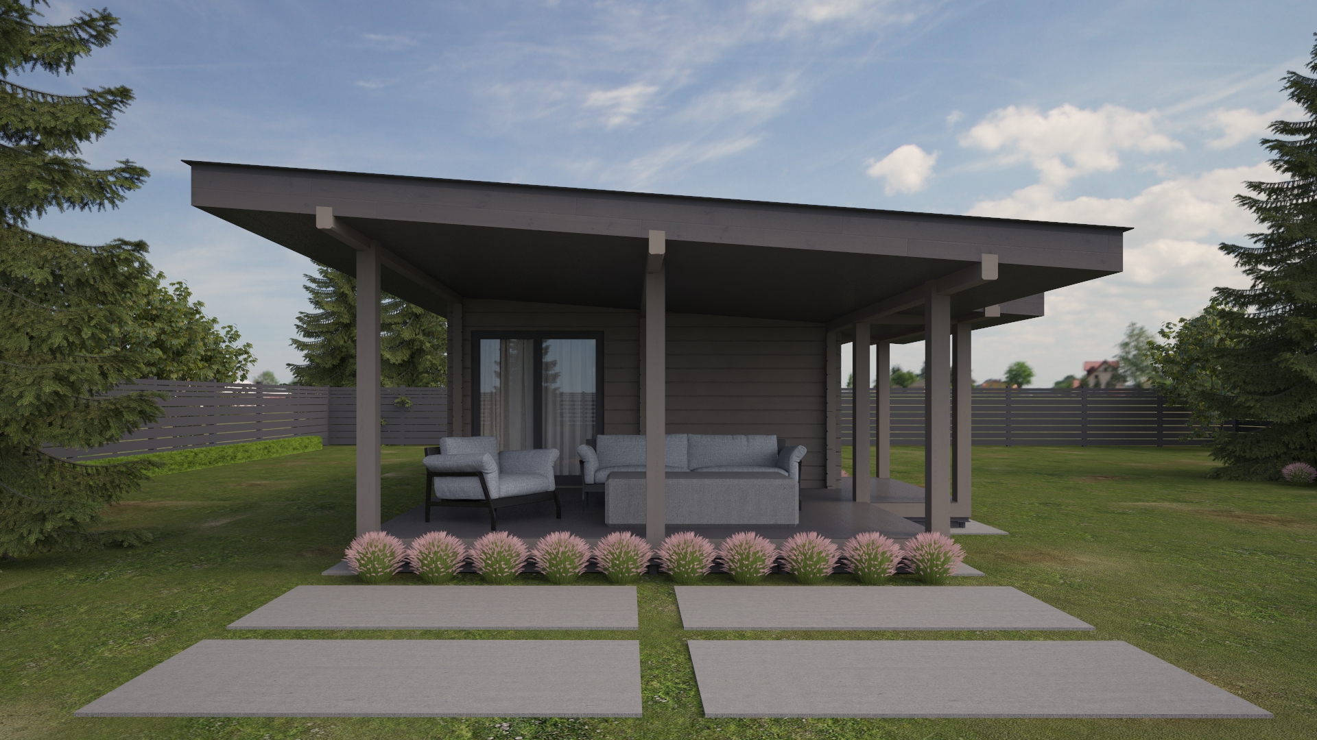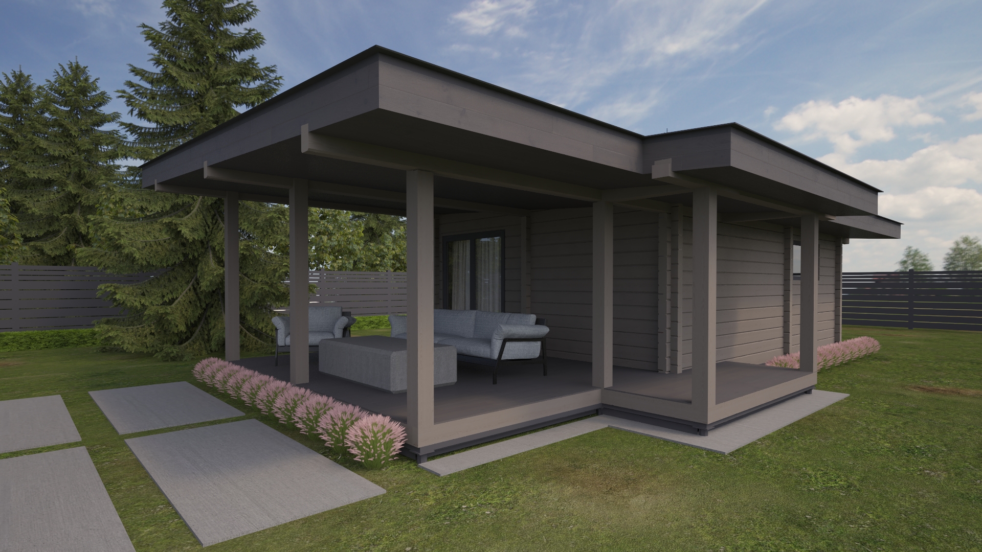 Sauna 1- это современная баня из клееного бруса с большой зоной отдыха, и террасой для барбекю.