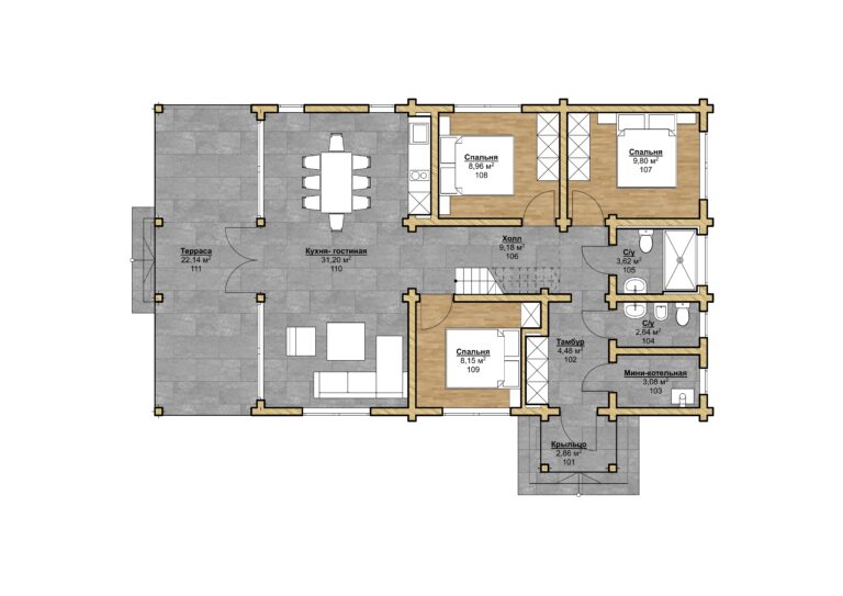 Дом в Фахверковом стиле -это особая эстетика . Данная технология позволяет дому дышать, а также сохранить все экологические свойства. Каркас дома собирается и стыкуется в плотные технологические отверстия. Данный проект имеет большой вылет крыши, под которым располагается уютная терраса ,что позволит провести ни один незабываемый вечер в кругу друзей и семьи наслаждаясь свежим воздухом и устроить барбекю или просто насладиться тишиной ,глядя на звезды .
